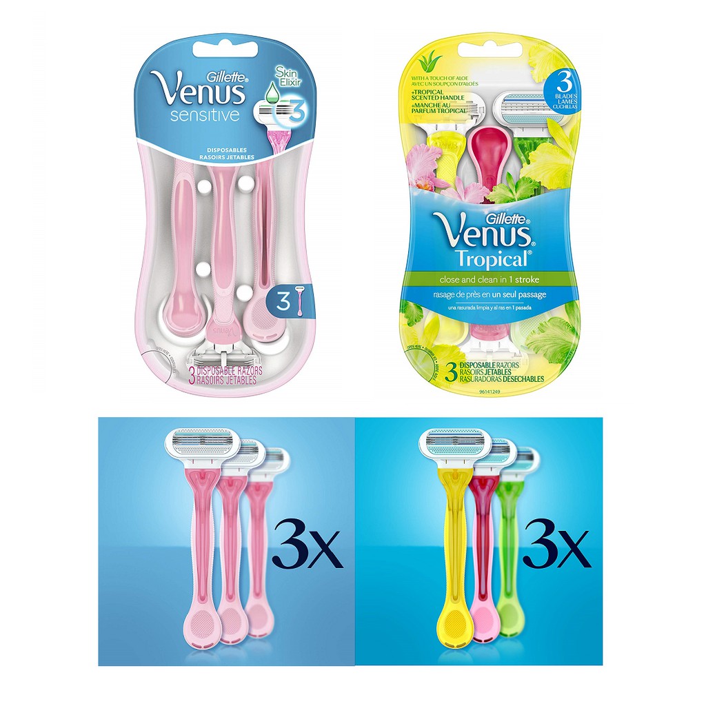 Gillette venus sensitive women's disposable razors, 3pcs · 3 pcs item code 610304 · 3 blades surrounded by soft, protective cushions. Gillette venus extra smooth sensitive women's disposable razor with skinelixir is perfect for protecting your sensitive skin. Gillette venus sensitive women's disposable razors at walgreens. Get free shipping at $35 and view promotions and reviews for gillette venus sensitive . Gillette venus sensitive disposable razor is a 3 bladed razor designed for women with sensitive skin.